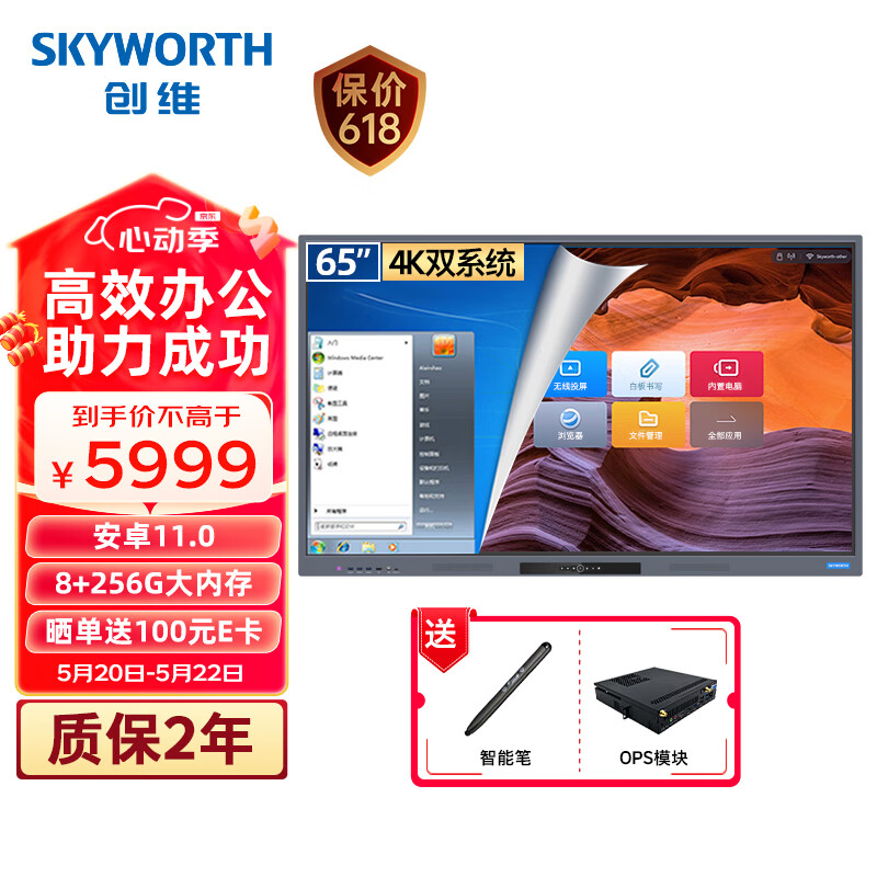 创维(Skyworth)65英寸会议平板 智能触摸一体机 电子白板书写 无线传屏投影 触屏电视65DSH5双系统【商用显示】价格:7149.00元!