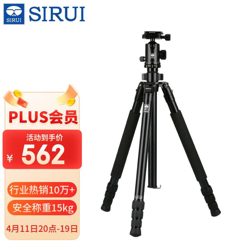 思锐(SIRUI)三脚架 R2004+G20KX 含云台佳能尼康单反相机三角架铝合金 单反相机三脚架 专业稳定 微单通用价格:646.00元!