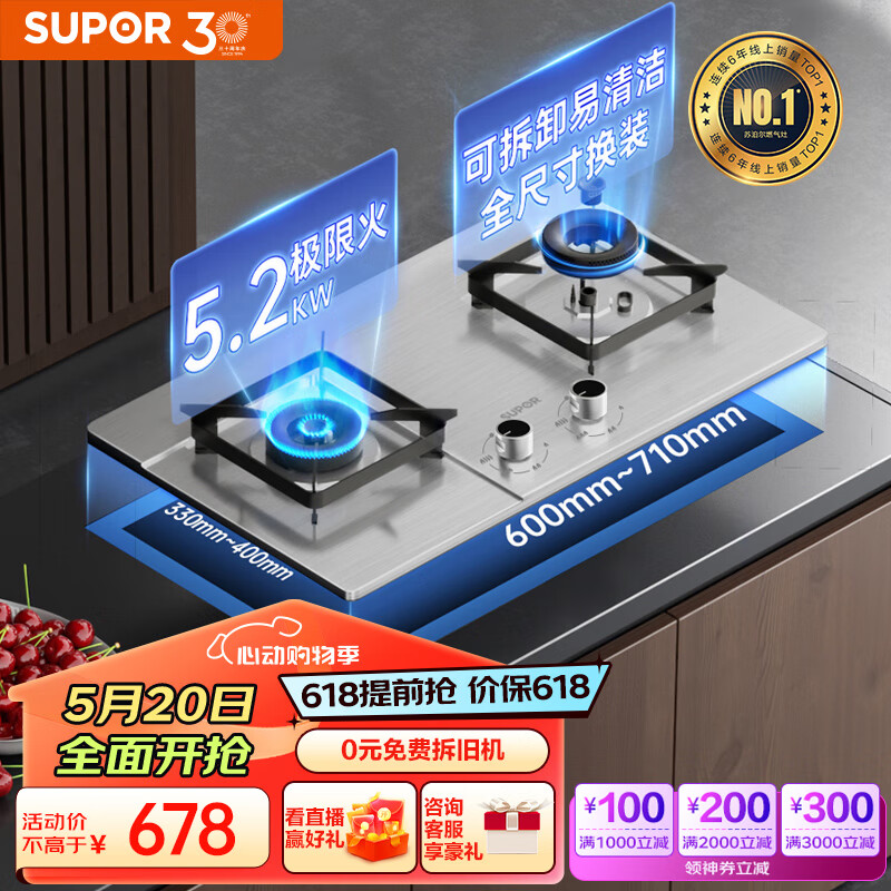苏泊尔(SUPOR)燃气灶双灶家用 天然气双灶具5.2kW升级猛火 易洁耐用不锈钢面板 台嵌两用灶具 DS37天价格:698.00元!