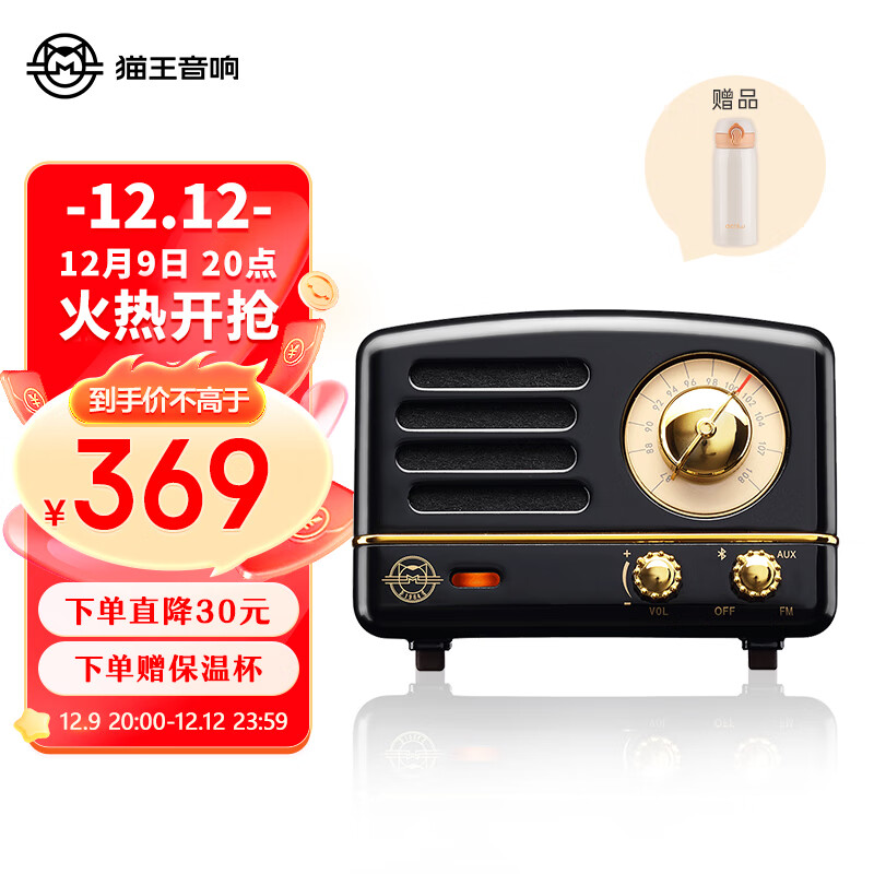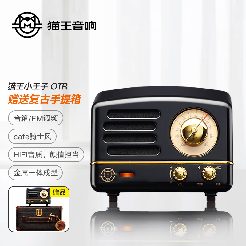 猫王收音机猫王音响猫王小王子OTR无线便携式蓝牙音箱可爱复古小音响家用金属低音炮收音机 骑士黑价格:369.00元!
