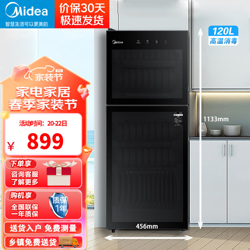 美的(Midea)消毒柜 家用立式消毒碗柜 婴儿餐具奶瓶刀具 红外线高温二星消毒烘干120R01/150R02 二 120L 全不锈钢内胆二星消毒价格:899.00元!