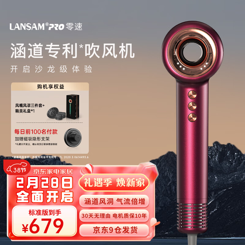LANSAM零速吹风机家用风筒负离子护发高速大功率大风力速干不伤发理发店发廊用电吹风 标准版-魅惑红价格:759.00元!