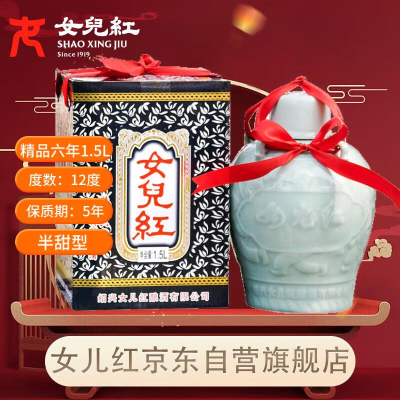 女兒红精品六年 半甜型 绍兴黄酒 1.5L 礼盒装 特型礼盒价格:61.00元!