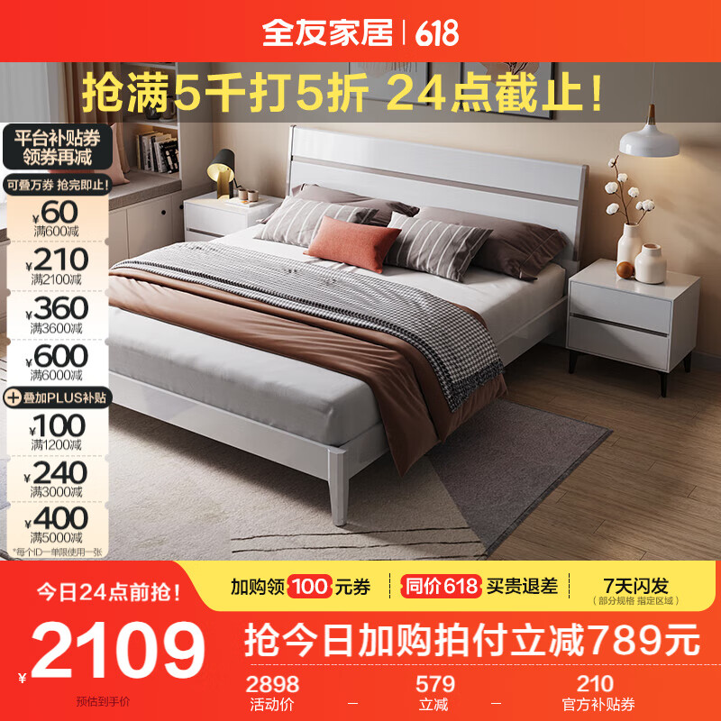 全友家居 双人床现代简约框架床双色拼接床屏板式床卧室家具126101价格:2898.75元!