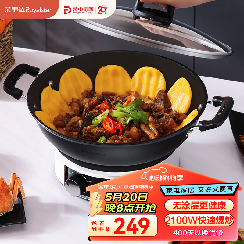 荣事达(Royalstar)电炒锅家用多功能蒸包子锅32CM电锅电炒锅山东锅电煮锅电火锅电蒸锅RDG-T32CG无笼价格:189.00元!