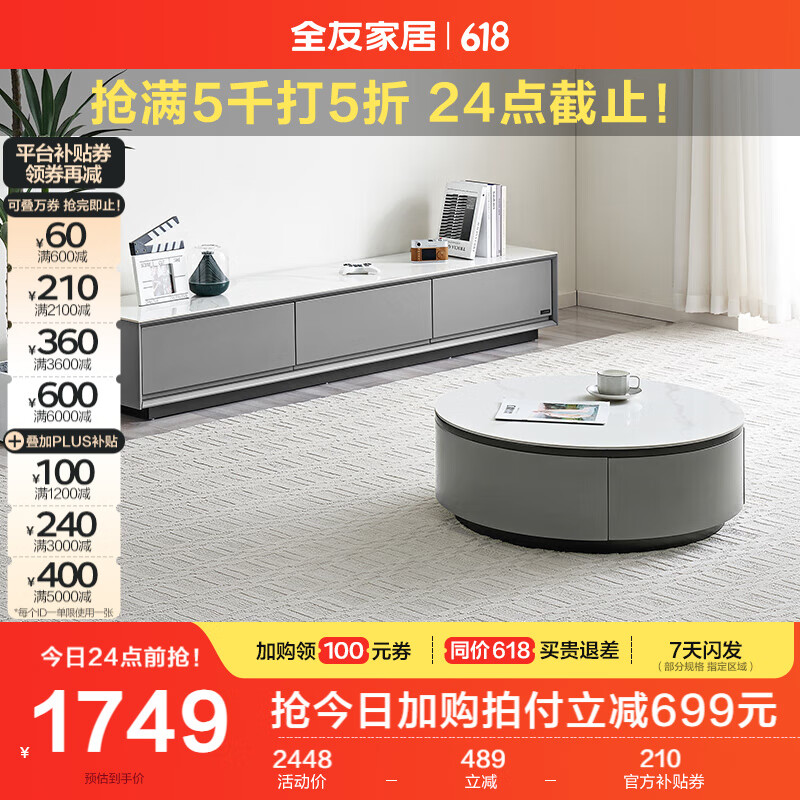 全友家居 岩板茶几电视柜组合现代简约客厅家用圆形茶几边几DW1055B价格:2448.75元!