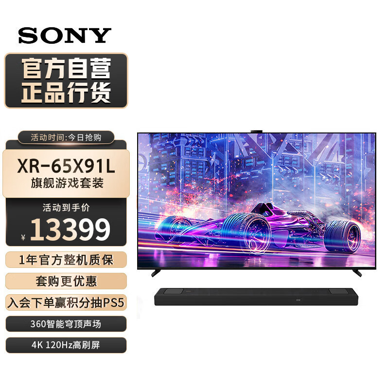 索尼(SONY)XR-65X91L+HT-A5000 家庭影院游戏套装 回音壁 360智能穹顶 无线家庭影院 4K/120 VRR ALLM价格:12089.00元!