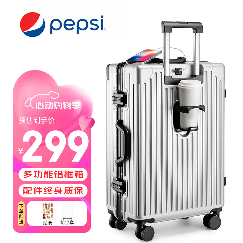 百事(PEPSI)行李箱男铝框拉杆箱女26英寸旅行箱大容量万向轮学生商务密码皮箱价格:299.00元!