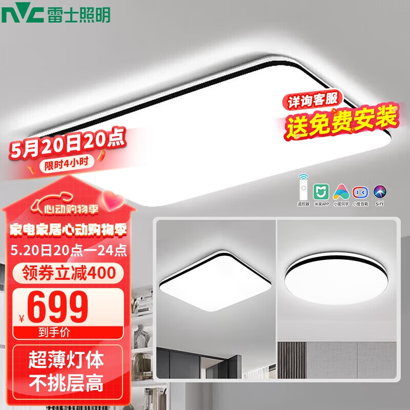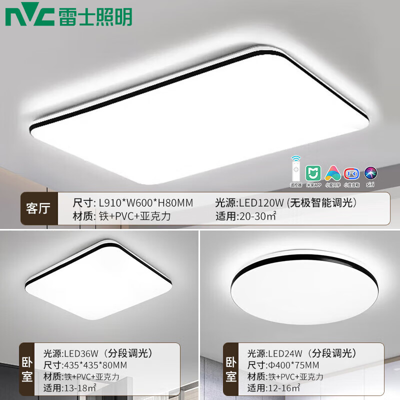 雷士照明(NVC)吸顶灯客厅大灯卧室餐厅灯具全屋套餐两室一厅A主灯智能价格:1099.00元!