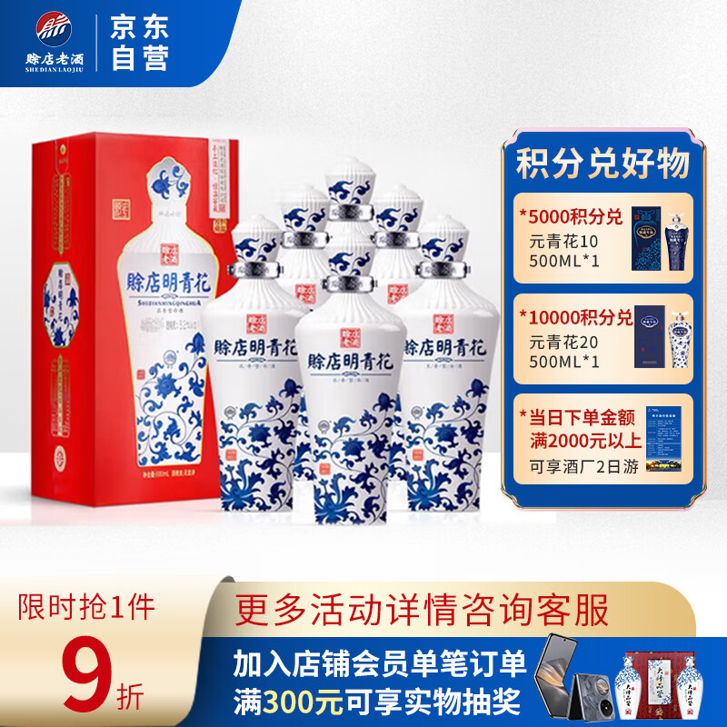 赊店老酒 明青花 浓香型白酒 52度 500ml*6瓶整箱装纯粮口粮酒价格:599.00元!