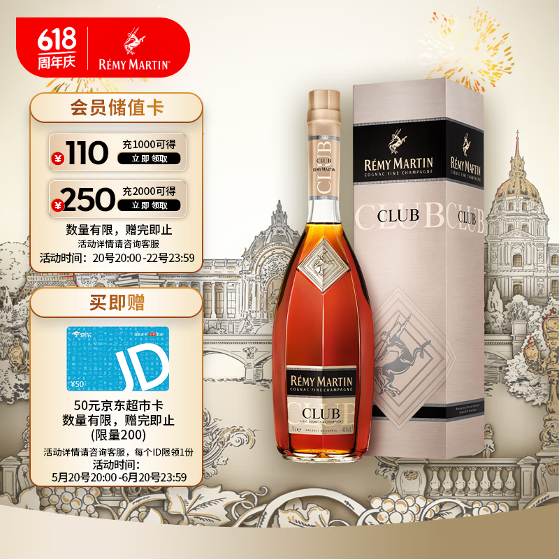 人头马(Remy Martin)洋酒 CLUB香槟区干邑白兰地 1500ml价格:1706.00元!