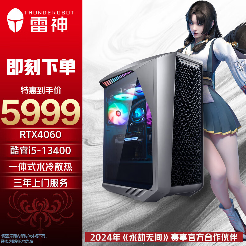 雷神(ThundeRobot)黑武士·Shark水冷游戏台式电脑电竞主机(13代i5-13400 16G D5 RTX4060 1TP4SSD 水冷散热)价格:5999.00元!