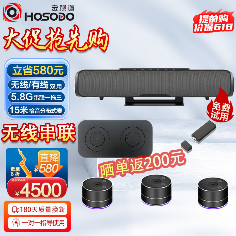 宏视道 视频会议全向麦克风HSD-U3X 无线5.8G一拖三串联拾音器(适合120㎡大型会议)会议桌面麦克风音响价格:4500.00元!