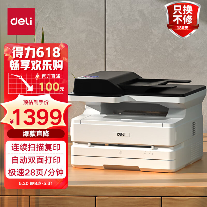 得力(deli)M2500ADW黑白办公商用三合一A4打印机复印机扫描机多功能一体机 家用无线 自动双面激光打印机价格:1399.00元!