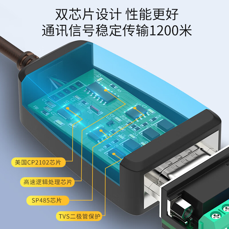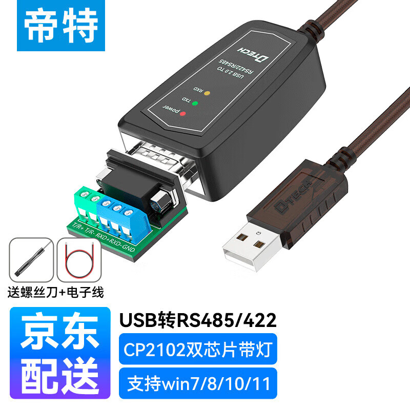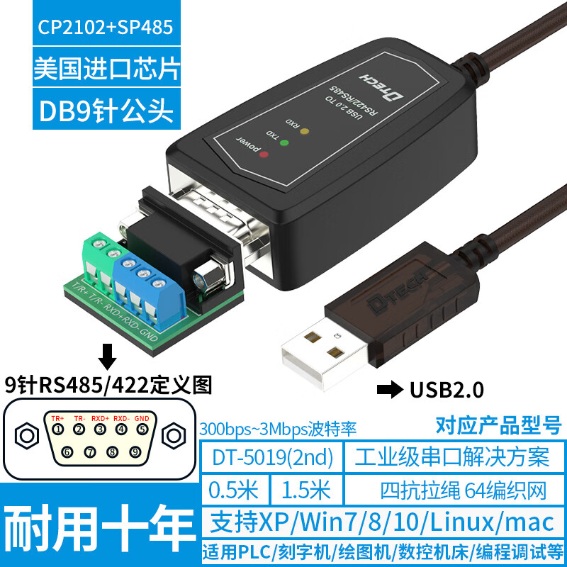 帝特USB转RS485/RS422转换器 9针串口模块485转usb高速3M通讯转换线plc调试线带数据指示灯1.5米DT-5019(2nd)价格:108.00元!