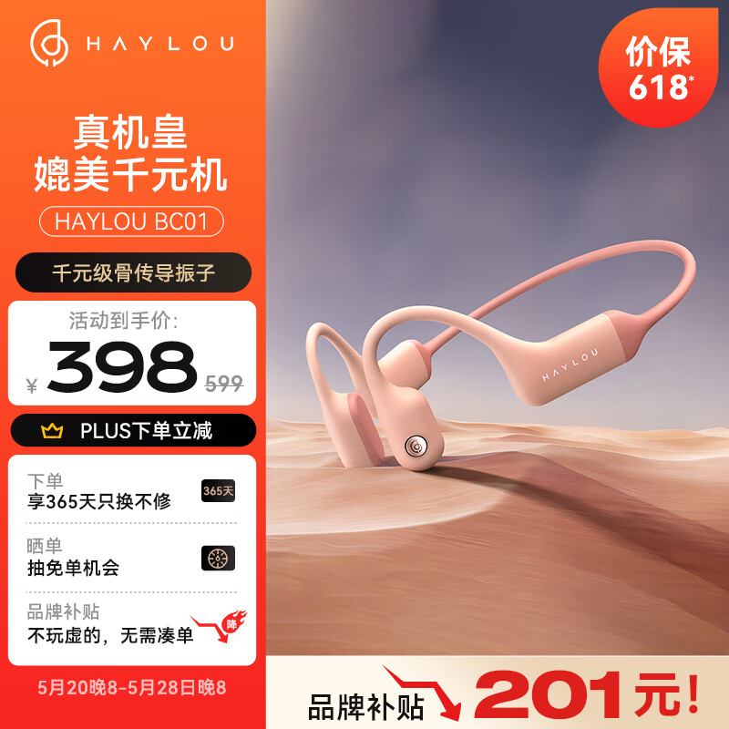 嘿喽(Haylou)【520礼物】PurFree骨传导耳机 不入耳开放式耳机 运动跑步无线蓝牙耳机 头戴式户外骑行 送女友价格:649.00元!