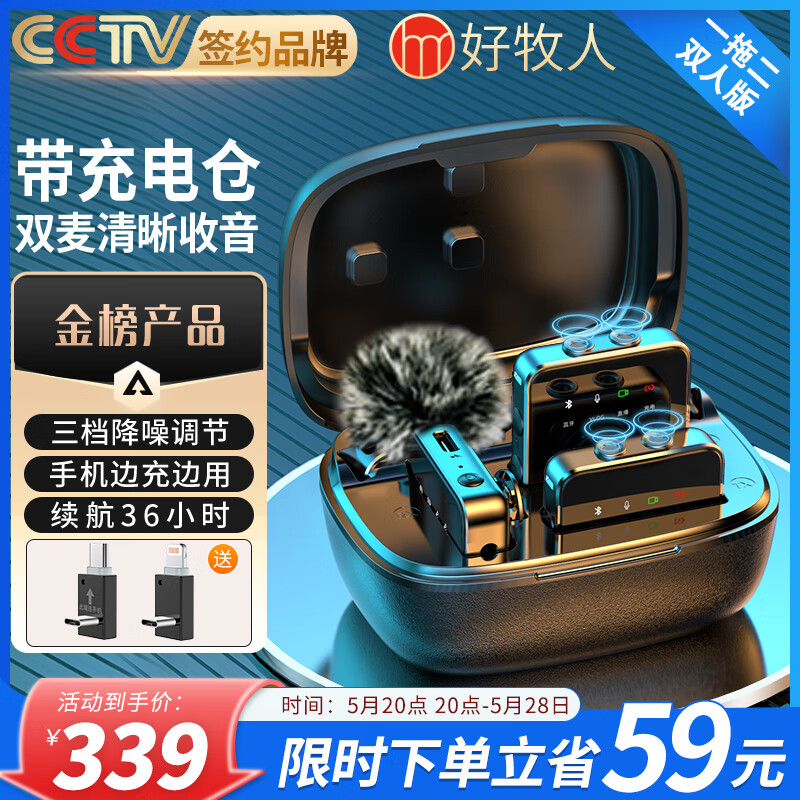 好牧人无线领夹麦克风直播收音麦主播专用录音设备声卡户外降噪抖音K歌拍视频收声器小蜜蜂一拖二话筒价格:393.00元!