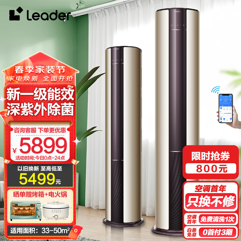 Leader海尔智家3匹家用圆柱冷暖柜机空调立式新一级能效变频除菌自清洁空调KFR-72LW/02WDA81TU1[家电]价格:6699.00元!