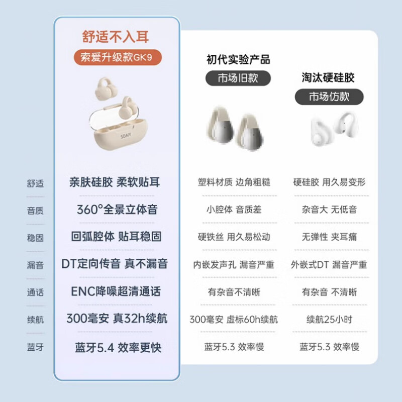 索爱(soaiy)GK9气骨传导耳夹式蓝牙耳机真无线 开放式不入耳跑步音乐通话降噪 苹果华为小米手机通用钛空灰价格:94.00元!