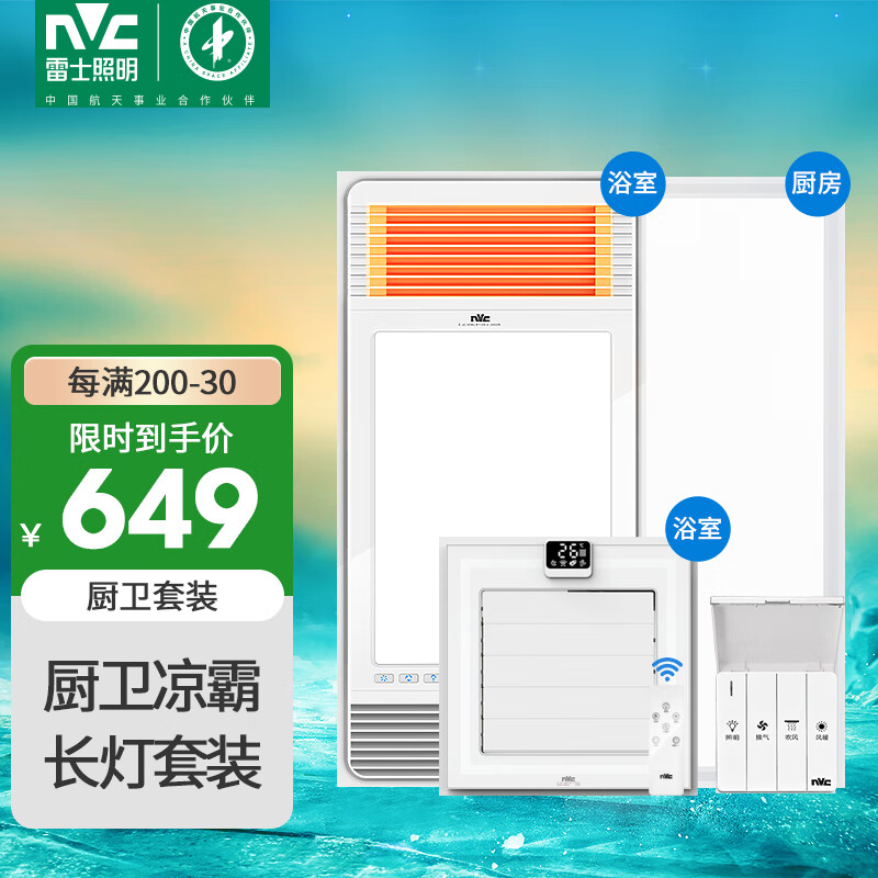 雷士(NVC)风暖浴霸风暖排气扇照明一体暖风机浴室取暖器+面板灯+凉霸套餐价格:739.00元!