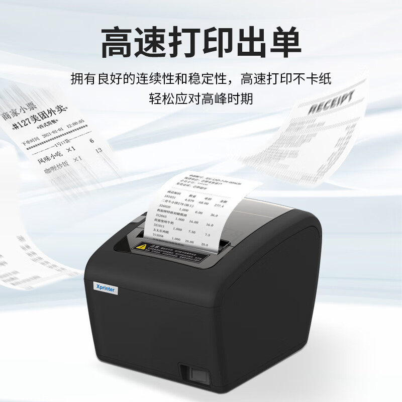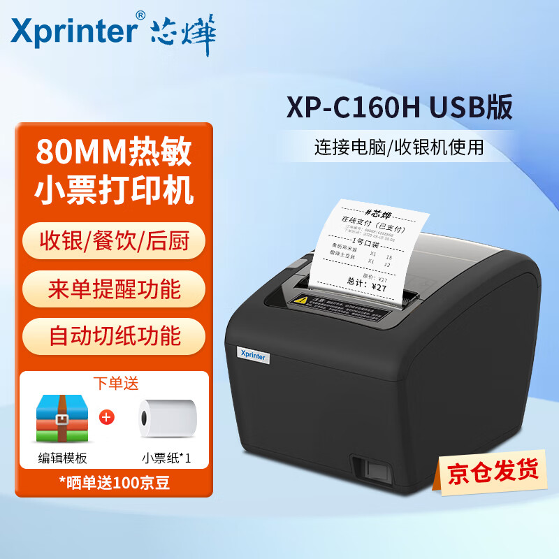 芯烨(XINYE)XP-C160H 80mm热敏小票机 餐饮酒店后厨美团外卖超市奶茶店收银小票打印机自动切纸USB带切刀价格:279.00元!