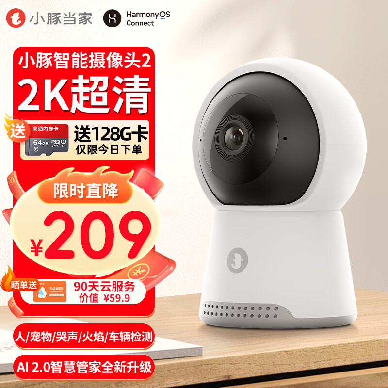 小豚当家2K超清家用摄像头手机远程监控器360度无死角带红外夜视全景语音高清手机远程婴儿 宝宝看护器监控价格:259.00元!