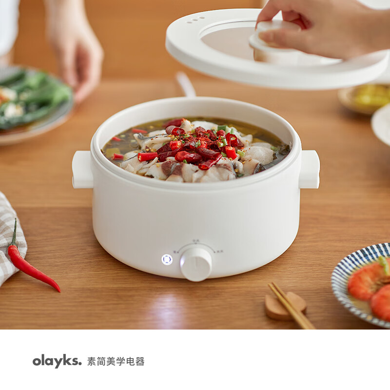 olayks立时 电煮锅 电火锅 小电锅 家用小火锅专用锅 陶瓷釉不粘锅炖煮煎炒一体多功能锅多用途电热锅 3L价格:119.00元!