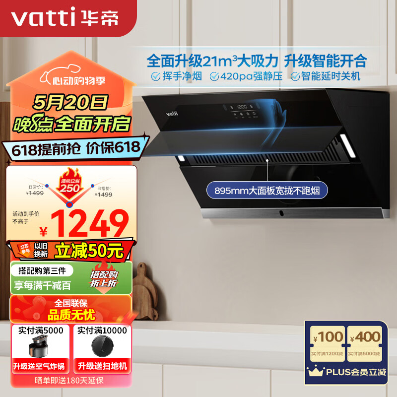 华帝(VATTI) 抽油烟机侧吸式家用吸油烟机小尺寸自动开合 21风量瞬吸大吸力脱排油烟机 i11127S价格:1249.00元!