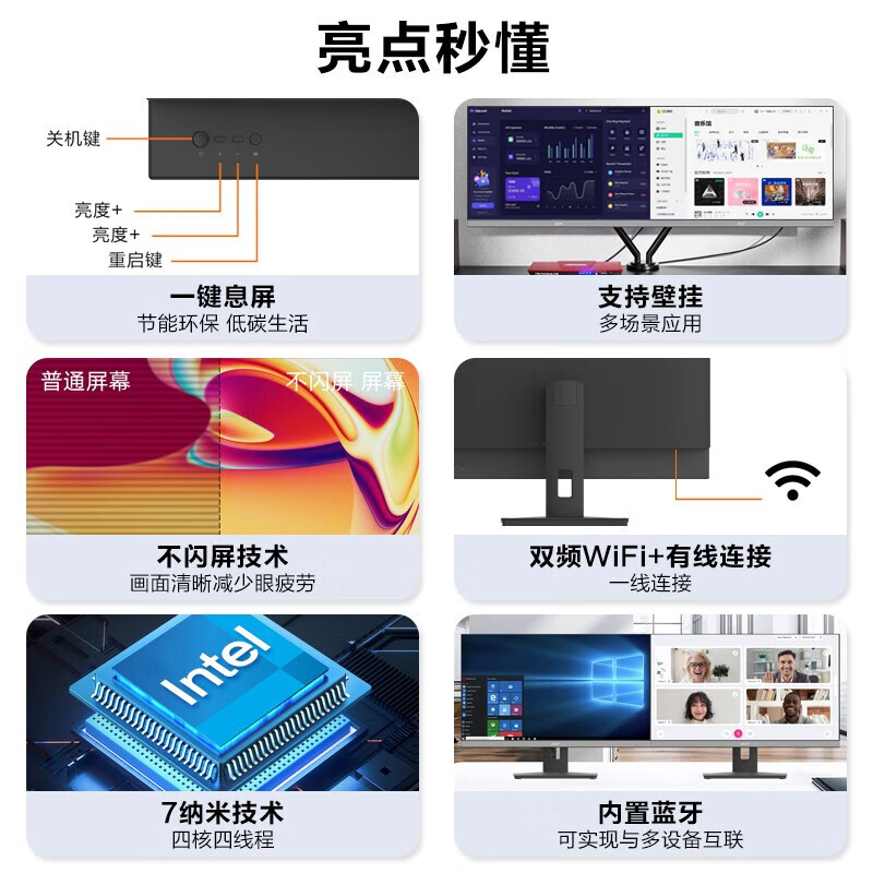 特性:支持壁挂,Wi-Fi,窄边框