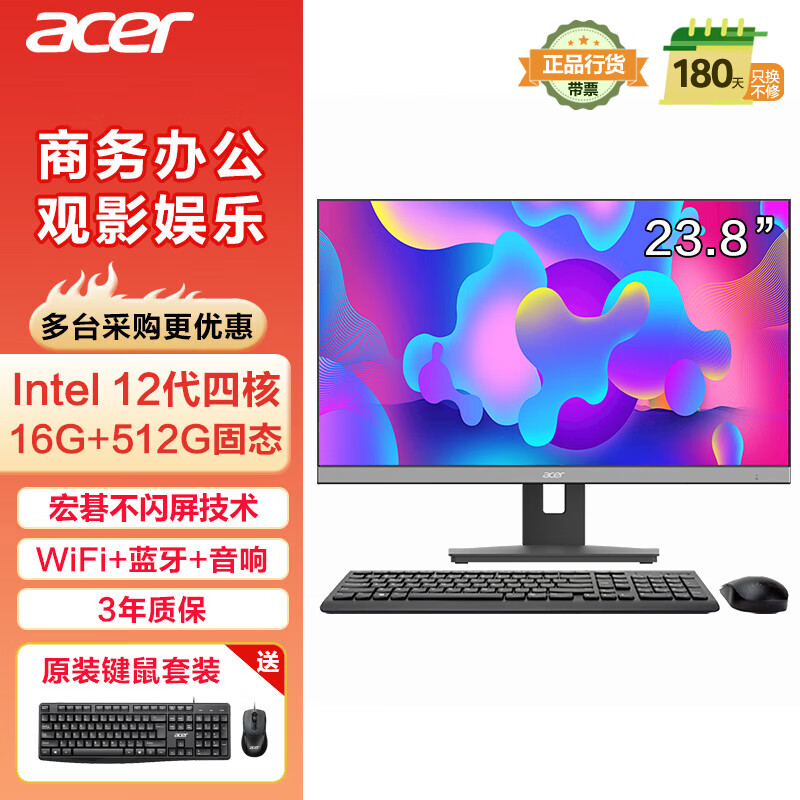 宏碁(acer)商祺 一体台式机电脑 23.8英寸(酷睿 12代 N100 16G 512G SSD)不闪屏 办公商用家用 定制版价格:1999.00元!