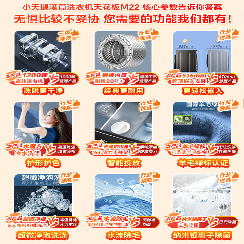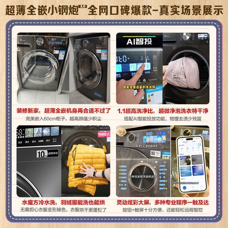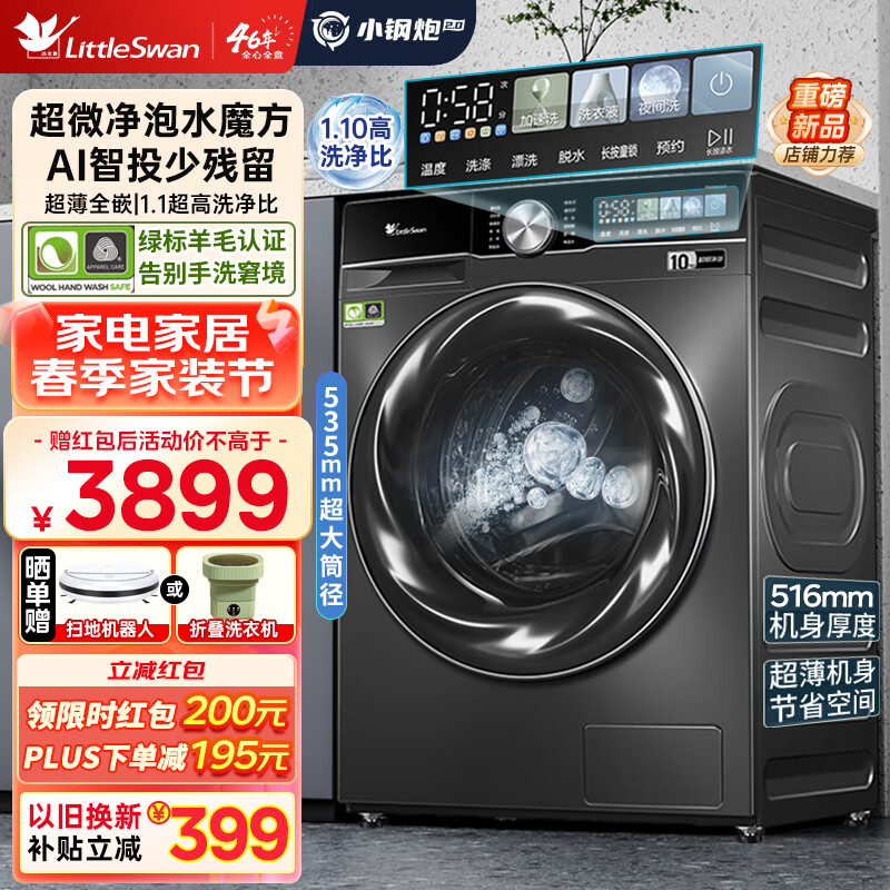 小天鹅(LittleSwan)滚筒洗衣机大容量10公斤小钢炮2.0洗脱一体1.1洗净比智能投放超薄全嵌超微净泡水魔方 TG100M22IT价格:3899.00元!