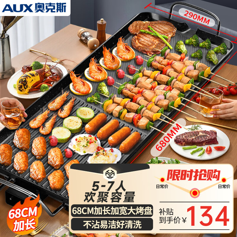 奥克斯(AUX)电烧烤炉 家用电烤盘烤串机不沾烤肉锅韩式煎肉锅电烤炉加大号 LA-KPTS02JD价格:134.00元!
