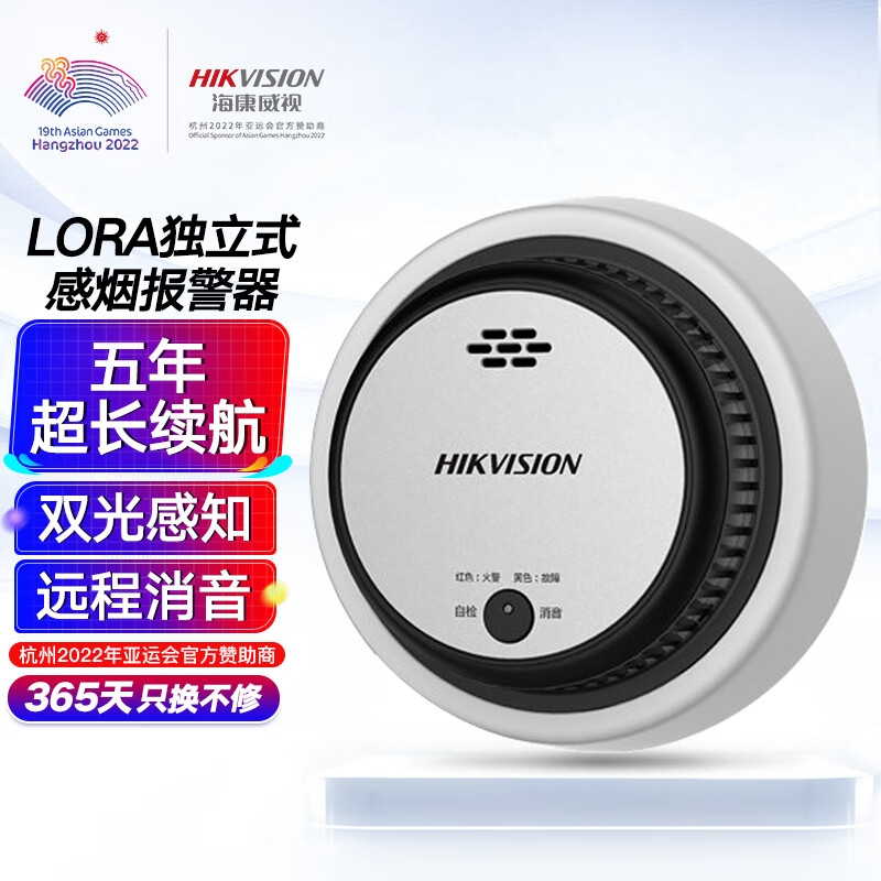 HIKVISION海康威视无线烟雾报警器独立式光电感烟感温火灾探测报警器3C商用认证智能消防NP-FY200(LORA)价格:148.00元!