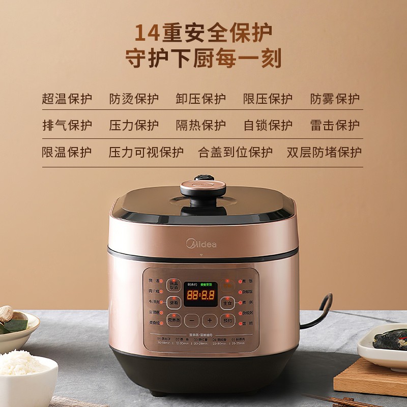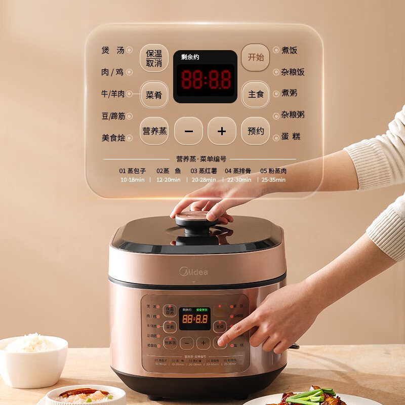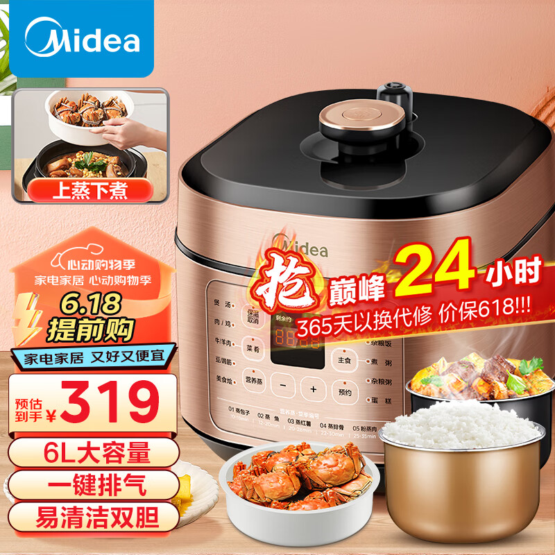 美的(Midea)提鲜系列 智能电锅6L家用多功能易清洁双胆高压快上蒸下煮 高压锅YL60X5-201(4-8人食用)价格:349.00元!