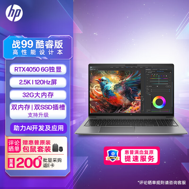 惠普(HP)战99 23款15.6英寸高性能笔记本AI电脑设计师本工作站?13代i7-13700H 32G 1T RTX4050 2.5K价格:9999.00元!