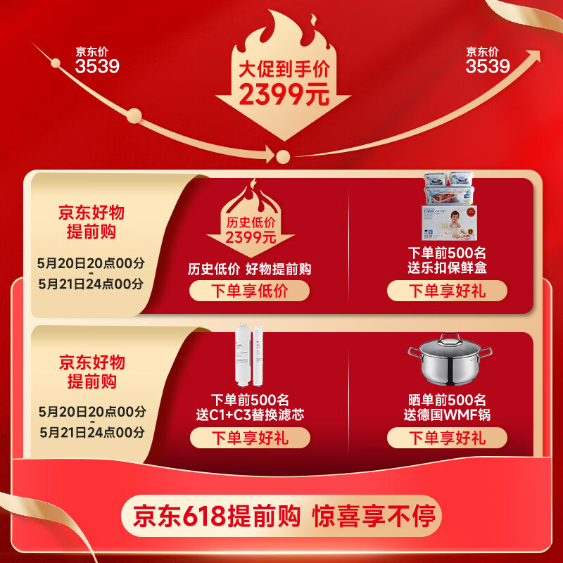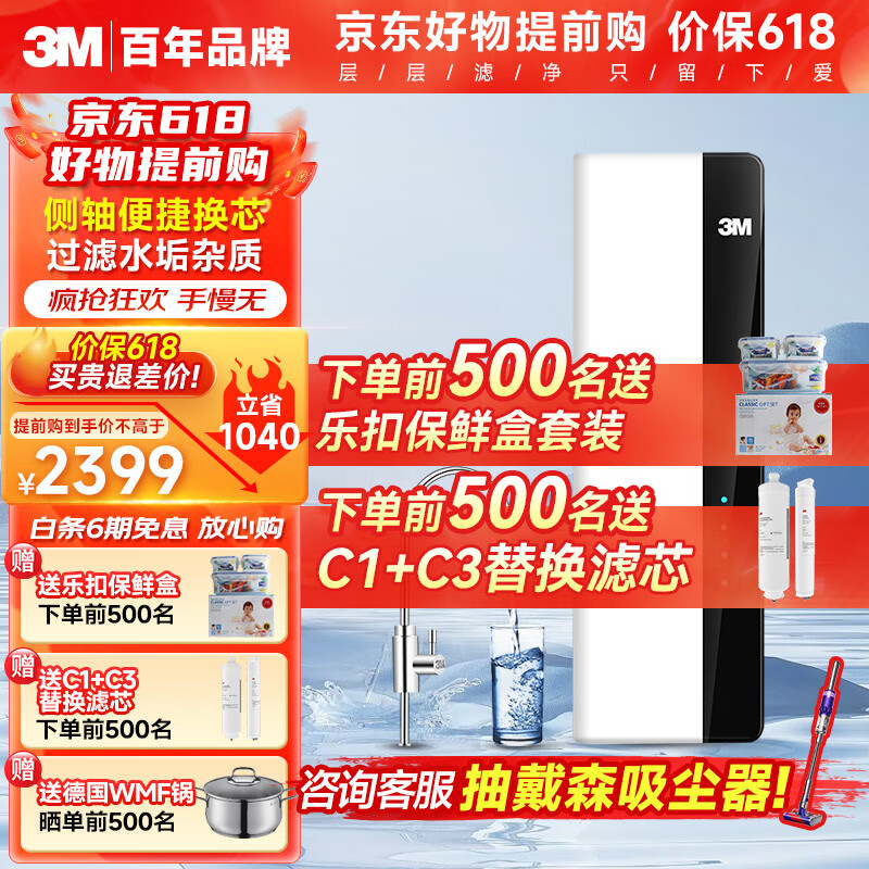 3M净水器家用净水机智能直饮RO反渗透过滤器 400G无桶大通量纯水机 LR400-JX90价格:2959.00元!