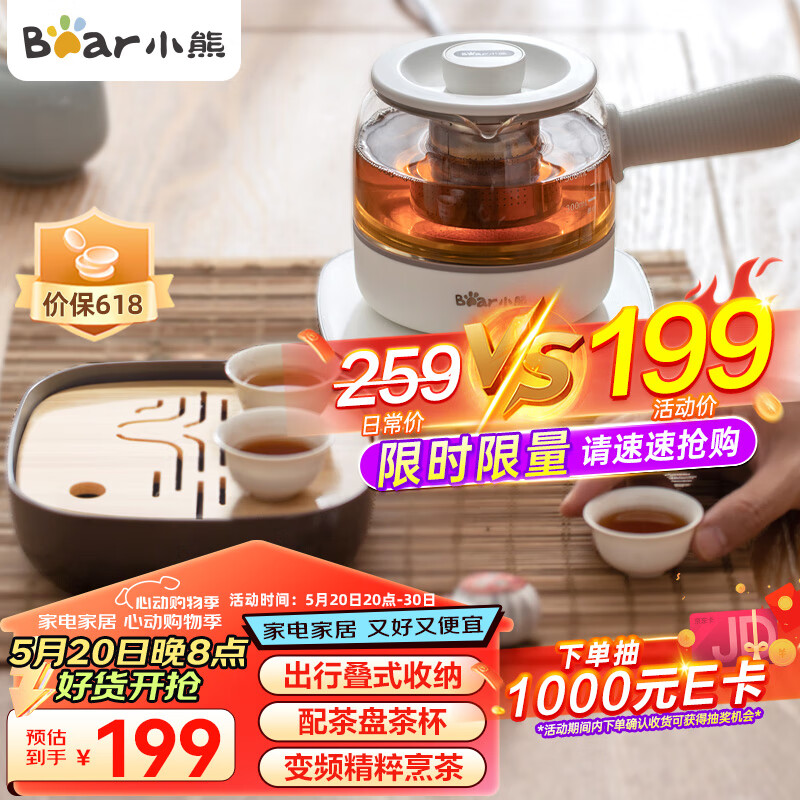 小熊(Bear)小熊(Bear)养生壶煮茶壶煮茶器 0.5L便携式烧水壶旅行家用蒸茶器花茶壶 ZCQ-A05S1 配茶具茶杯价格:199.00元!