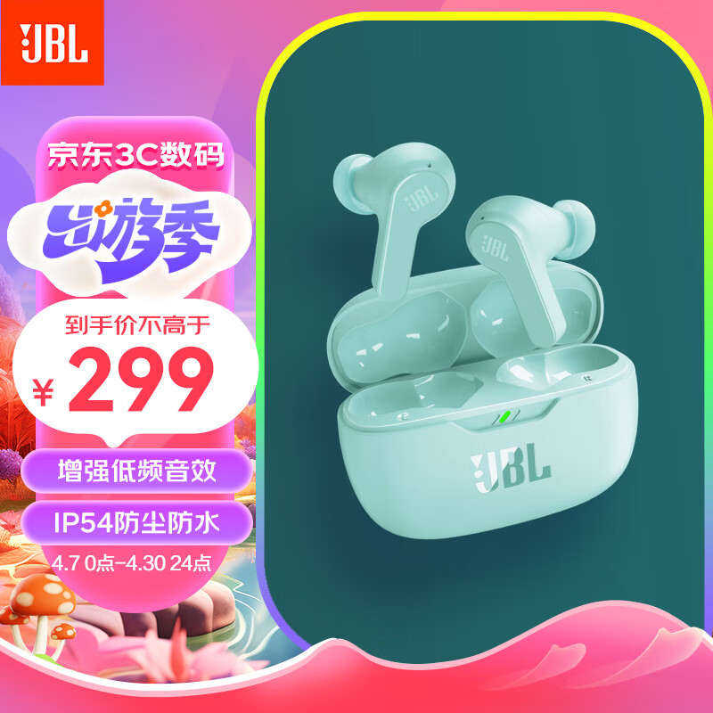 JBL WAVE BEAM 真无线蓝牙音乐耳机 入耳式通话降噪 环境感知运动防水防尘通用苹果安卓手机 薄荷绿价格:329.00元!