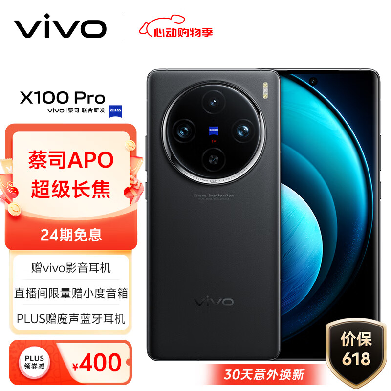 vivo X100 Pro 16GB+1TB 辰夜黑 蔡司APO超级长焦 蓝晶×天玑9300 5400mAh蓝海电池 自研芯片V3 手机价格:5999.00元!