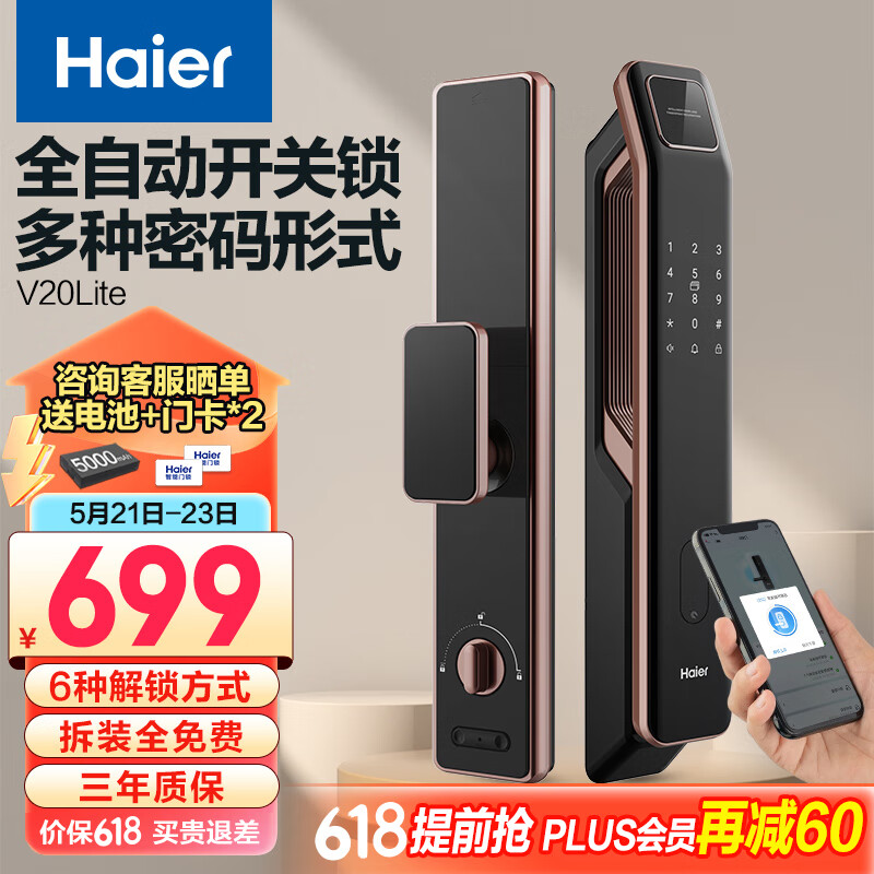 海尔(Haier)智能门锁指纹锁指纹密码锁电子门锁HFA-20V-U1Lite免费上门安装价格:799.00元!