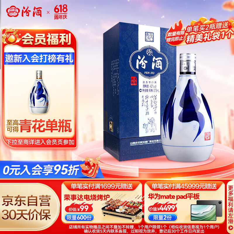 汾酒 青花20 清香型白酒 42度375ml 单瓶礼盒装 商务送礼价格:368.00元!