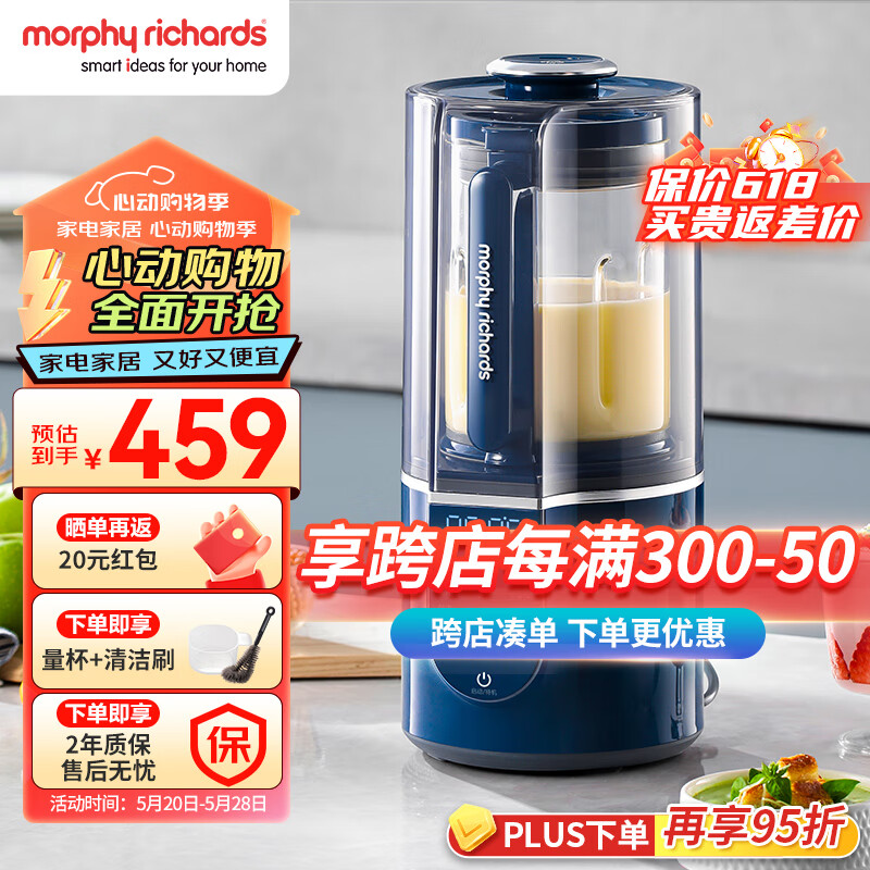 摩飞电器(Morphyrichards)破壁机 家用柔音豆浆机多功能加热全自动榨汁机搅拌机一键清洗预约保温隔音降噪辅食机MR8201蓝价格:509.00元!