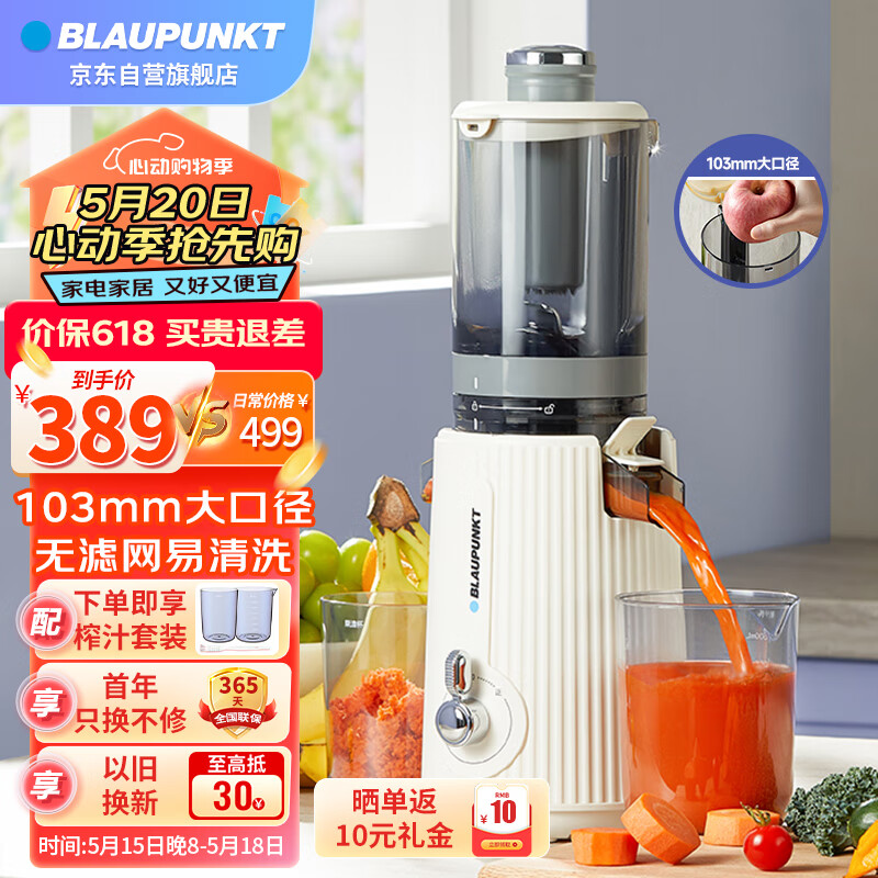 蓝宝(BLAUPUNKT)榨汁机原汁机家用果汁机汁渣分离全自动大口径水果蔬菜免切榨汁多功能无滤网好清洗YJ01价格:379.00元!