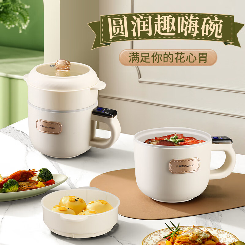 荣事达(Royalstar)电煮锅多功能迷你电热锅家用电蒸锅学生宿舍煮面锅小电锅一体1.5L电火锅 蒸笼DZG12M(ZL)价格:89.90元!