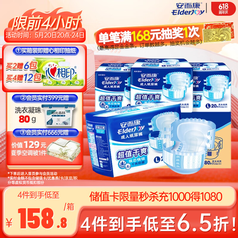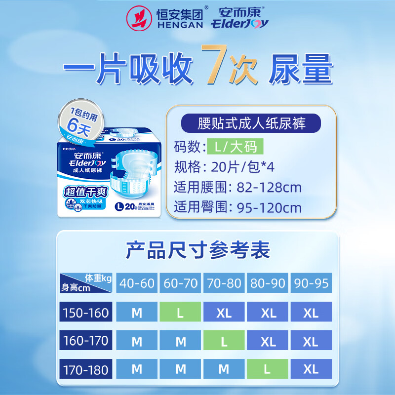 安而康(Elderjoy)超值干爽成人纸尿裤 成人尿不湿 老年人产妇尿不湿防漏快吸 L80片价格:207.00元!