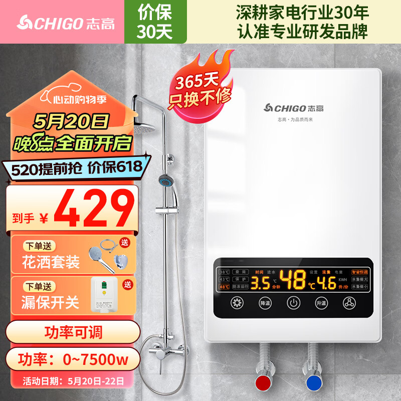 志高(CHIGO)即热式电热水器免储水热水器速热式 7500W变频恒温小厨宝洗澡功率可调 大屏款 KBR-L75价格:559.00元!