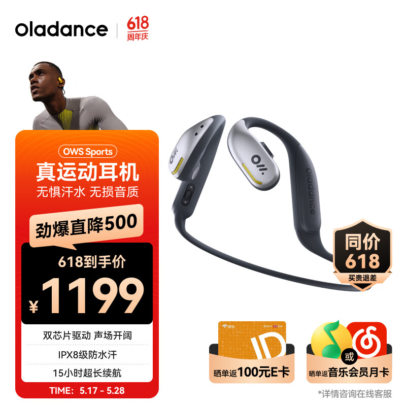OladanceOWS Sports开放式耳机不入耳式蓝牙耳机防水降噪IPX8运动耳机超长续航 银价格:1199.00元!