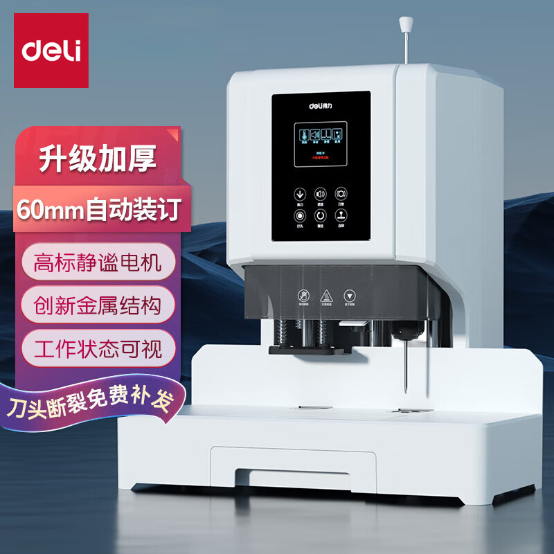得力(deli)升级款600页自动财务凭证装订机 会计凭证文件资料档案打孔机热熔胶管 加强电机14667价格:2299.00元!