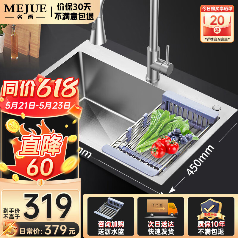 名爵(MEJUE)厨房水槽304不锈钢龙头洗菜池洗碗盆一体式台下盆淘菜水池槽2467价格:379.00元!