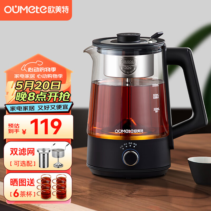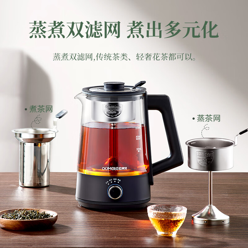 欧美特(OUMETE)煮茶壶 煮茶器 喷淋式蒸汽茶壶 养生壶 玻璃恒温保温煮茶烧水壶双网配置OMT-PC1016A 价格:119.00元!